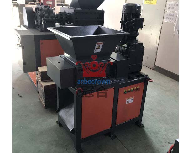 雙軸撕碎機將廢舊的編織袋,用機械直接送入新型編織袋粉碎機通過電機→傳動減速機→傳動主軸,由主軸上安裝的N把動刀與機架上安裝的定刀,將整捆的編織袋粉碎,經分離水槽將編織袋與雜物(石塊、等雜物)分離,到達可回收利用之原料。